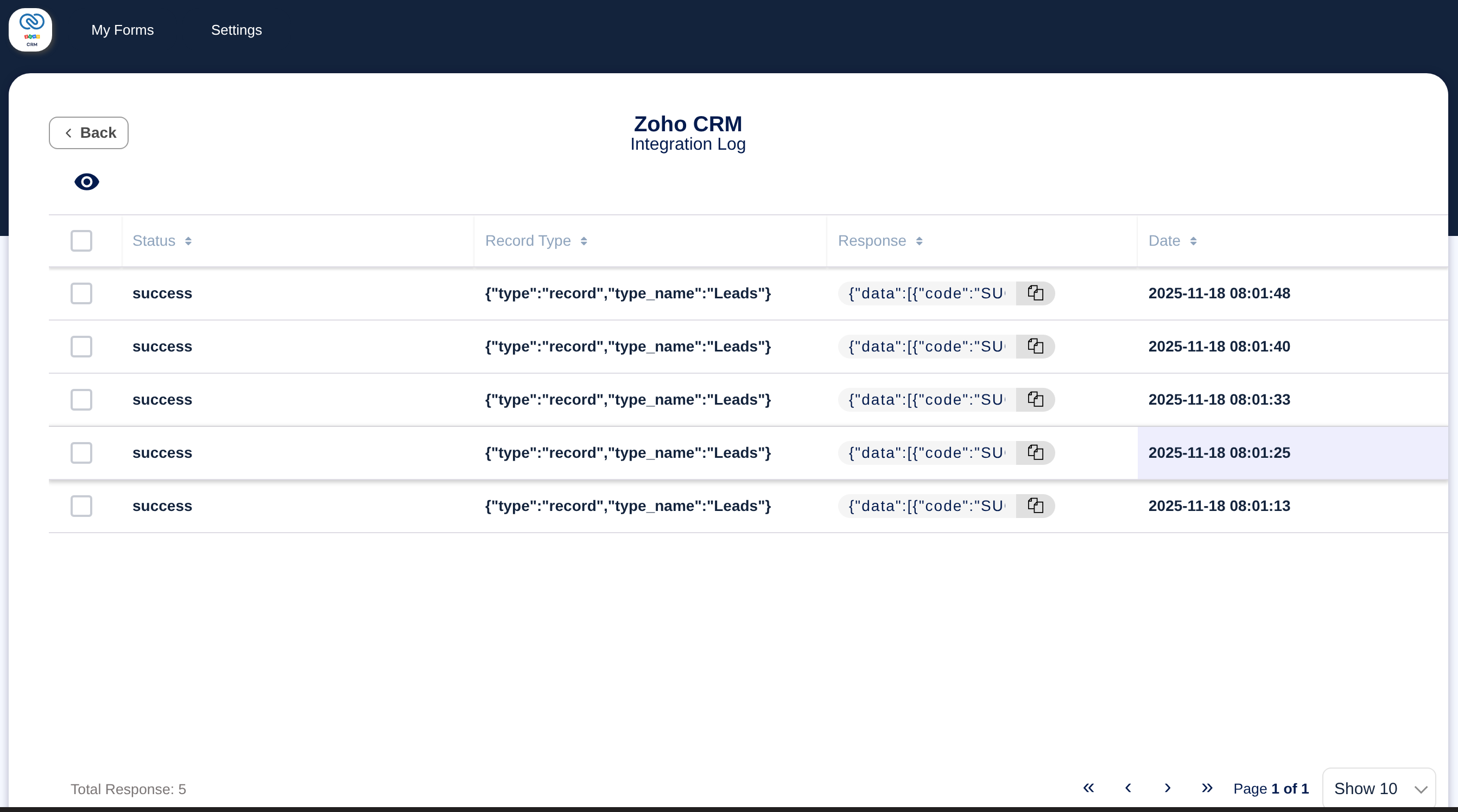 Here you can see the API response from Zoho CRM after WPForms is submitted. You will get a response whether the submission is successful or failed. It will help you to debug the situation.